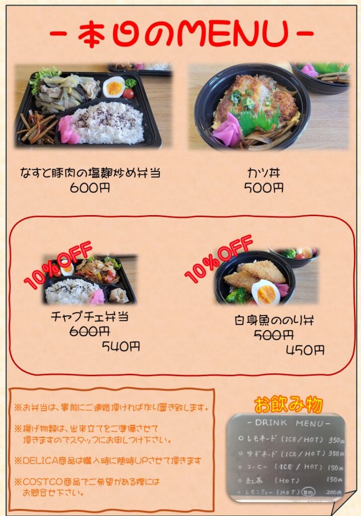 Hyakka本日のお弁当情報|塩麹炒め&カツ丼|お得な10%OFF実施中
