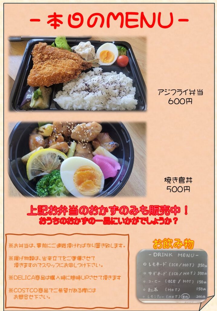 【水戸市】本日のお弁当情報|アジフライ弁当・焼き鳥丼がワンコイン価格